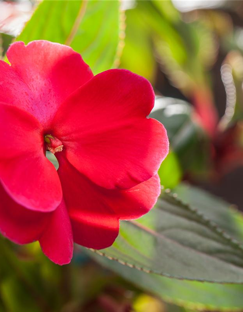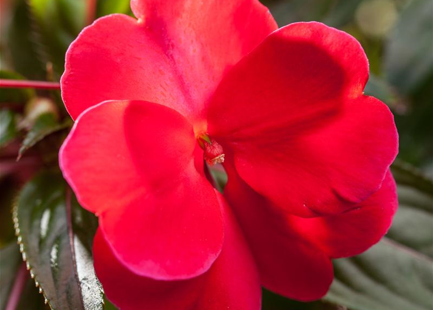 Das Sonnenlieschen (Impatiens neuguinea) ist eine beliebte Pflanze für den Balkon, die während der gesamten Saison unzählige rote Blüten bildet. Die dunkelgrünen Blätter sind eiförmig. Ein sonniger bis schattiger Standort und ein durchlässiges Substrat werden bevorzugt.