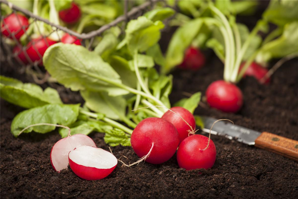 Das Radieschen (Raphanus sativus var. sativus) bildet Knollen, die aromatisch schmecken und bereits ab Juni geerntet werden können. Für das optimale Wachstum des Radieschens werden ein sonniger Standort und durchlässiger, nährstoffreicher Boden benötigt.