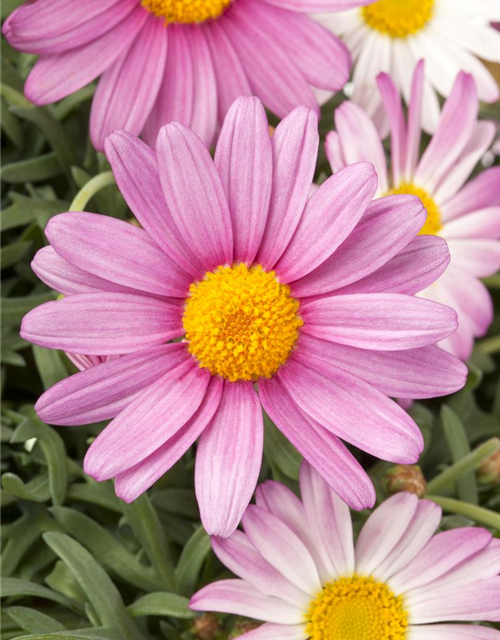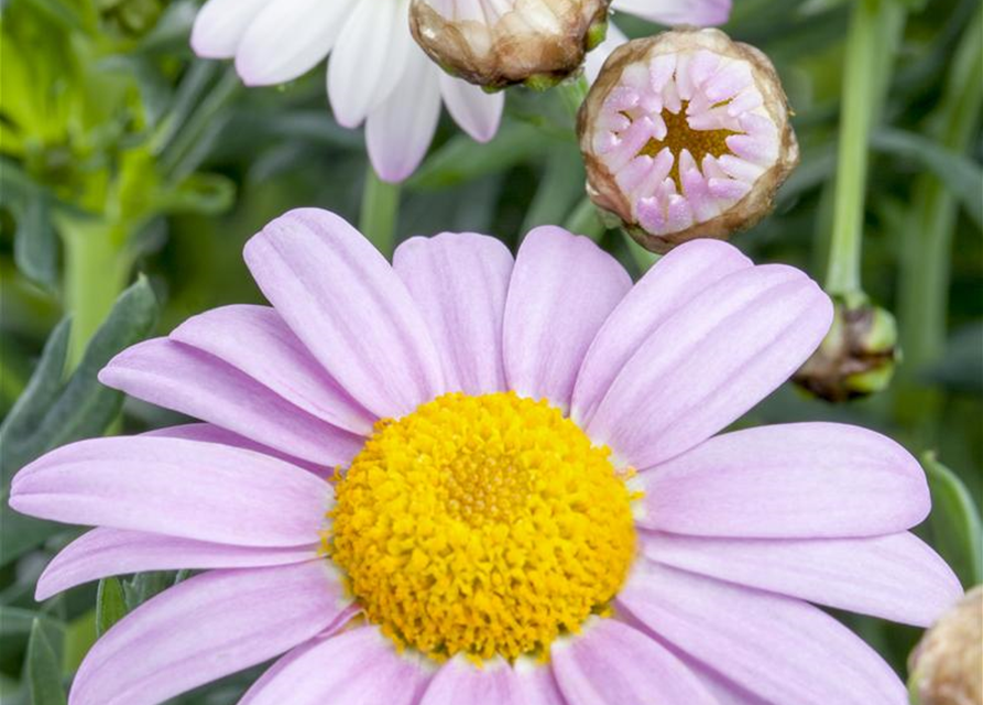 Die Strauchmargerite (Argyranthemum frutescens) ist eine beliebte Pflanze für den Balkon, die während der gesamten Saison unzählige rosafarbene Blüten bildet. Ein sonniger Standort und ein durchlässiges Substrat werden bevorzugt.
